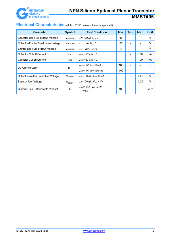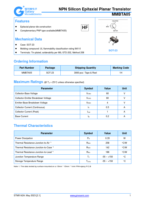 | MMBTA05 | NPN Small Signal Transistor | Taiwan Semiconductor | |