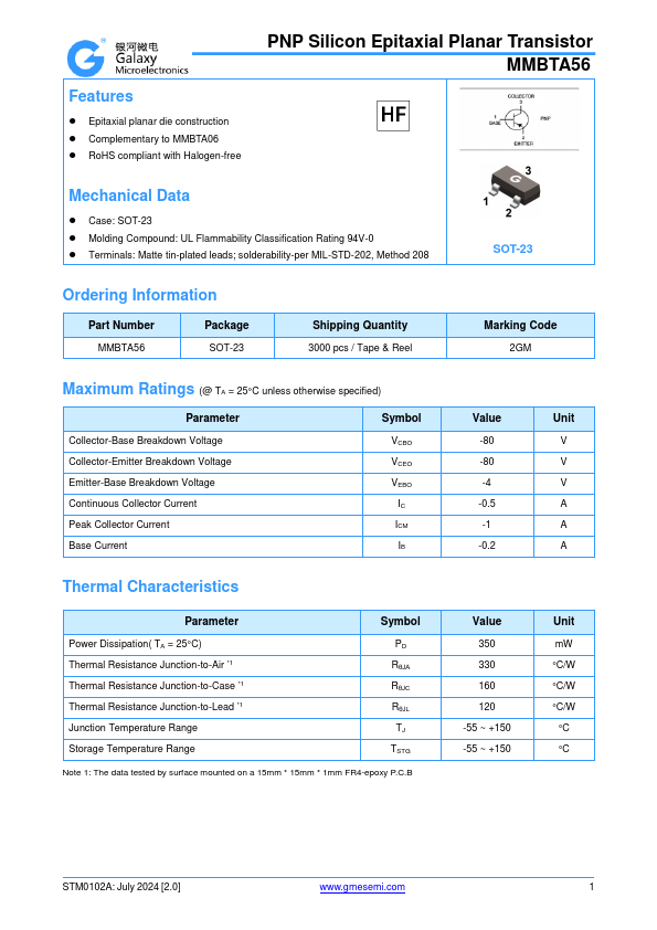 MMBTA56 | PNP General Purpose Amplifier | MCC |