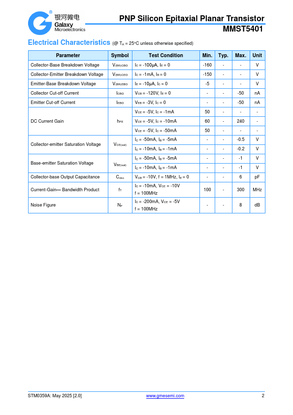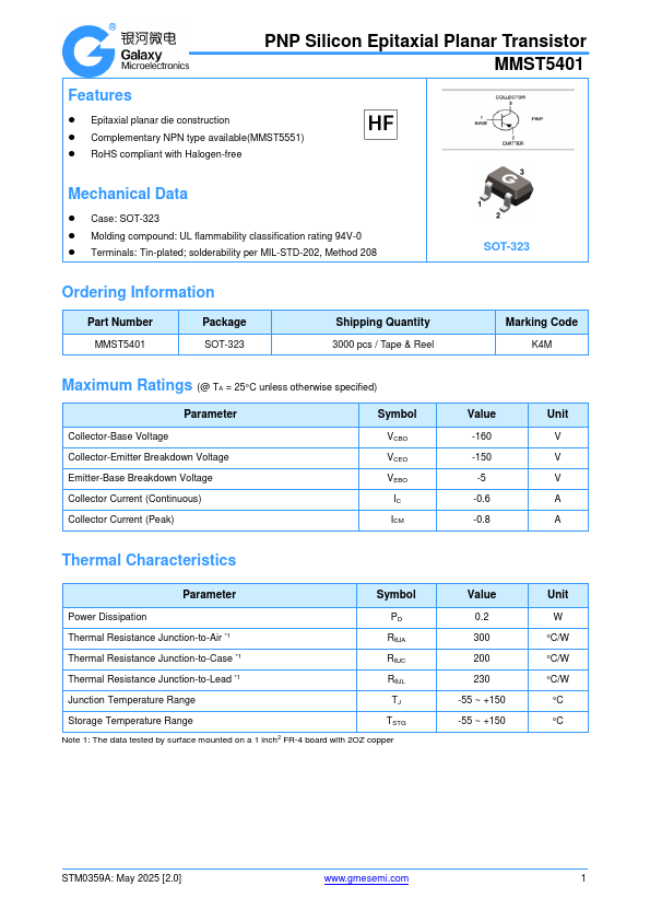 MMST5401 | 160V PNP SMALL SIGNAL TRANSISTOR | Diodes Incorporated |