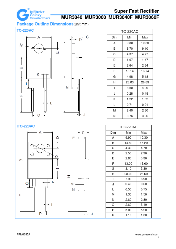 Super Fast Rectifier MUR3040 MUR3060 MUR3040F MUR3060F.