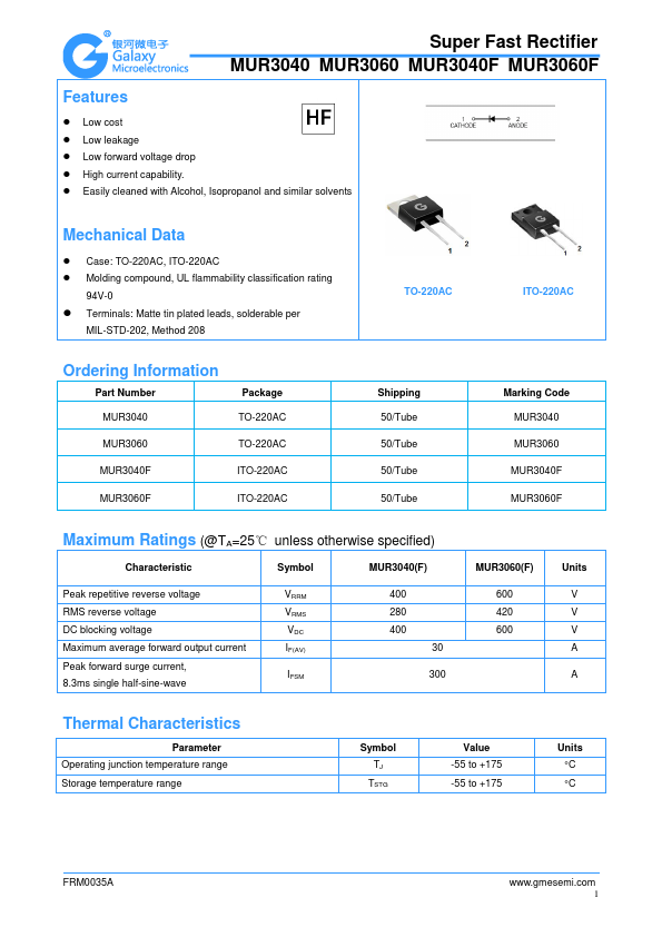 Super Fast Rectifier MUR3040 MUR3060 MUR3040F MUR3060F.