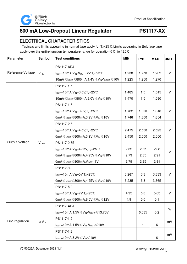 Note: The manufacturer provides a single datasheet file (PS1117-ADJ-GME.pdf) that lists specifications for multiple related part numbers.