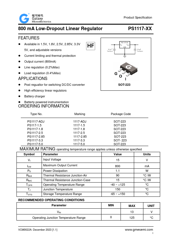 PS1117-ADJ PS117-1.5 PS1117-1.8 PS1117-2.5 PS1117-2.85 PS1117-3.3 PS1117-5.0