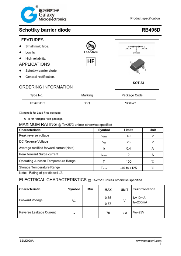 | Datasheet | RB495D-GME.pdf |
