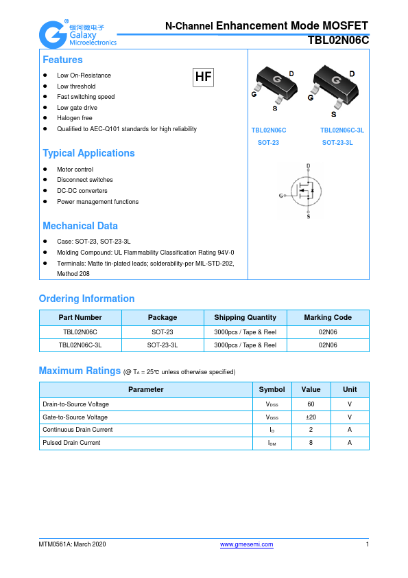 N-Channel Enhancement Mode MOSFET TBL02N06C