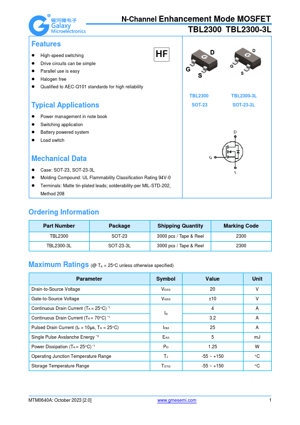 N-Channel Enhancement Mode MOSFET TBL2300 TBL2300-3L.