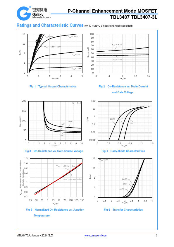 This page provides the datasheet information for the TBL3407-3L, a member of the TBL3407 P-Channel Enhancement Mode MOSFET family.