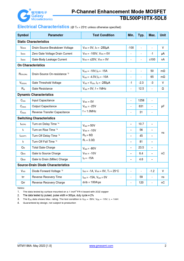 P-Channel Enhancement Mode MOSFET TBL500P10TX-5DL8