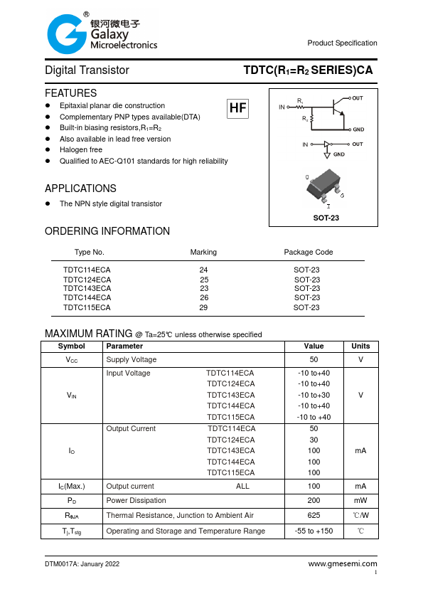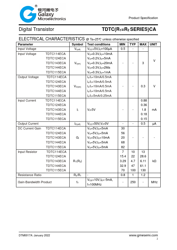 Product Specification Digital Transistor TDTC(R1=R2 SERIES)CA.