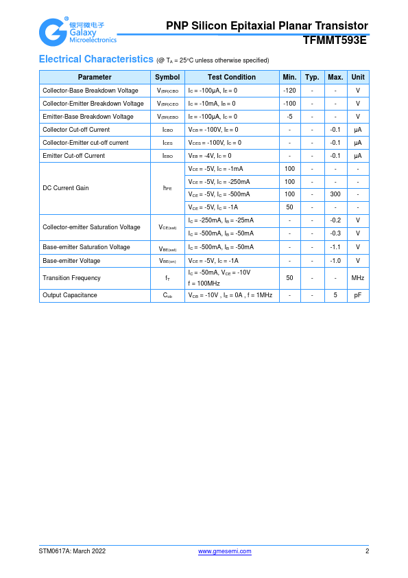 PNP Silicon Epitaxial Planar Transistor TFMMT593E.
