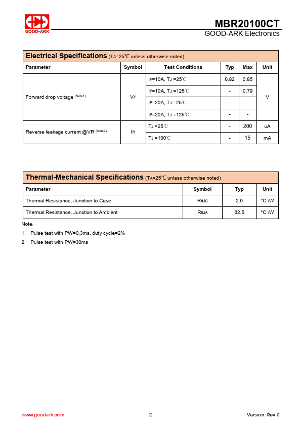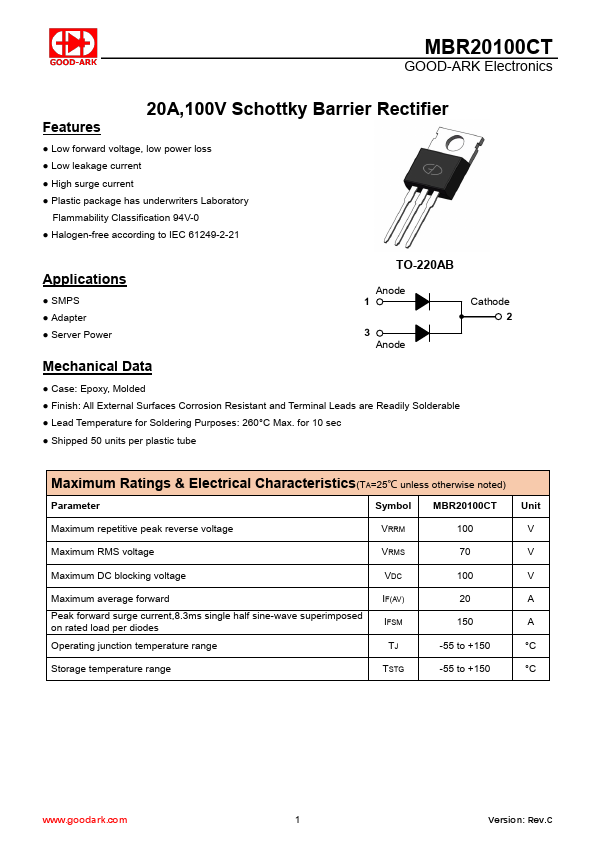 MBR20100CT datasheet by Good-Ark Semiconductor.