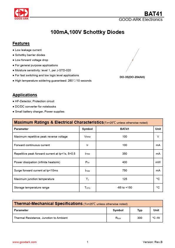 | Datasheet | BAT41-GOODARK.pdf |