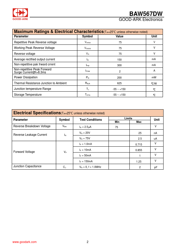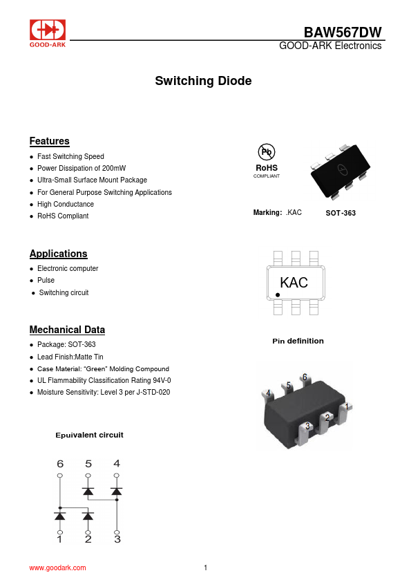of changes First issue .goodark. 5 Doc.No.672065 BAW567DW GOOD-ARK Electronics Disclaimers These materials are intended as a reference to assist our customers in the selection of the Suzhou Good-Ark product best suited to the customer’s application; they do not convey any license under any intellectual property rights, or any other rights, belonging to Suzhou Good-Ark Electronics Co., Ltd.or a third party.