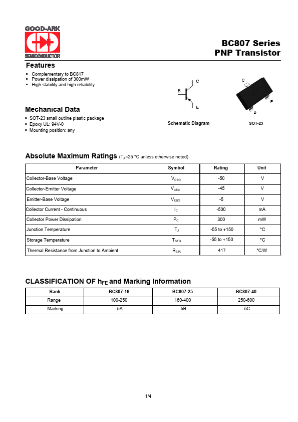 | Datasheet | BC807-25 BC807-16 Datasheet (PDF) |