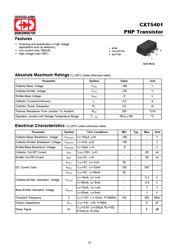 | Datasheet | CXT5401-GOODARK.pdf |