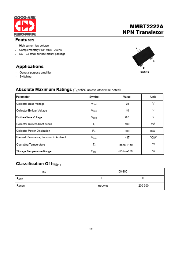 | Datasheet | MMBT2222A-GOODARK.pdf |