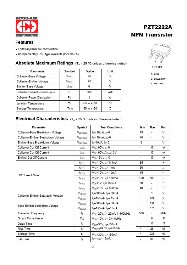 | Datasheet | PZT2222A-GOODARK.pdf |