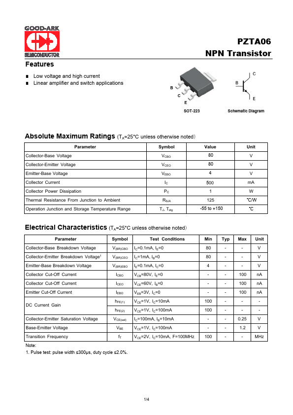 | PZTA06 | NPN General Purpose Amplifier | Fairchild Semiconductor | |