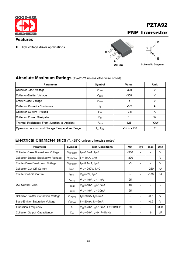 | Datasheet | PZTA92-GOODARK.pdf |