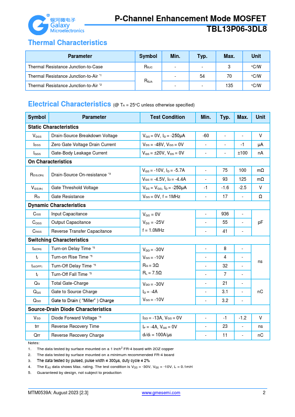 P-Channel Enhancement Mode MOSFET TBL13P06-3DL8.