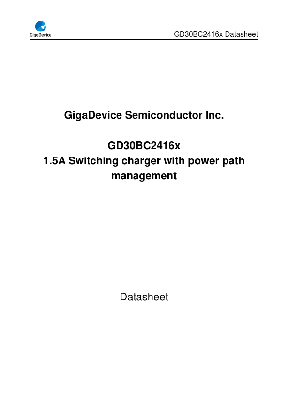 GD30BC2416x Datasheet The GD30BC2416x is a highly integrated, programmable, low quiescent current power management integrated circuit (PMIC) that integrates the most common needs for wearables and low power battery applications. The GD30BC2416x integrates a switching charger of programmable charging current (up to 1.5A) and a synchronous boost converter at Typical 5V output.