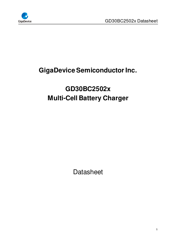 GD30BC2502x Datasheet The GD30BC2502x is a highly integrated low quiescent current switching battery charger control IC for 2/3/5 series cell Li-ion battery packs. It drives an external N-MOSFET that can output a charge current up to 5A through a sensing resistor and has a very high efficiency up to 90%.