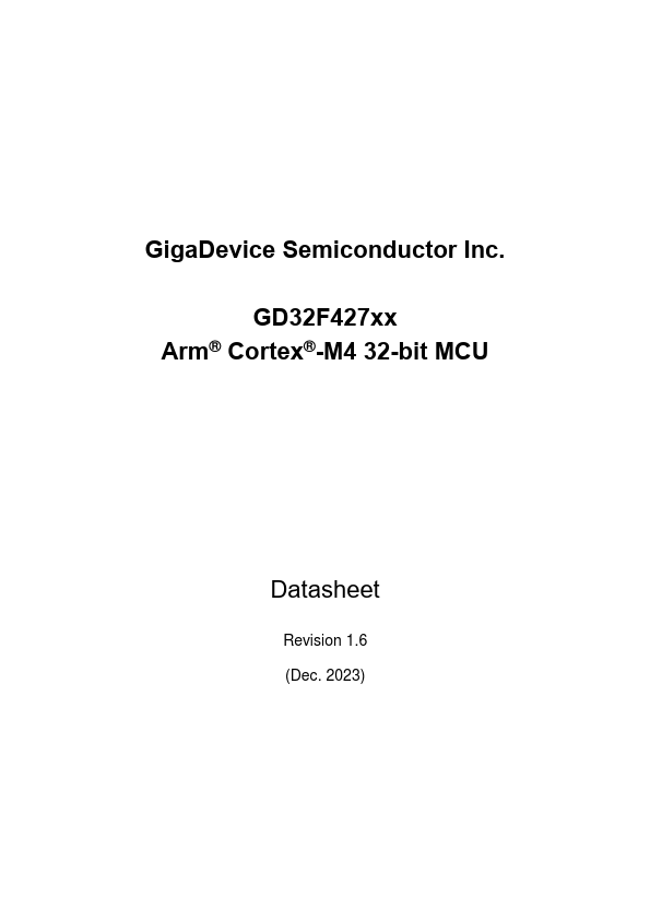 GD32F427xx Datasheet The GD32F427xx device belongs to the connectivity line of GD32 MCU family. It is a new 32bit general-purpose microcontroller based on the Arm® Cortex®-M4 RISC core with best costperformance ratio in terms of enhanced processing capacity, reduced power consumption and peripheral set.