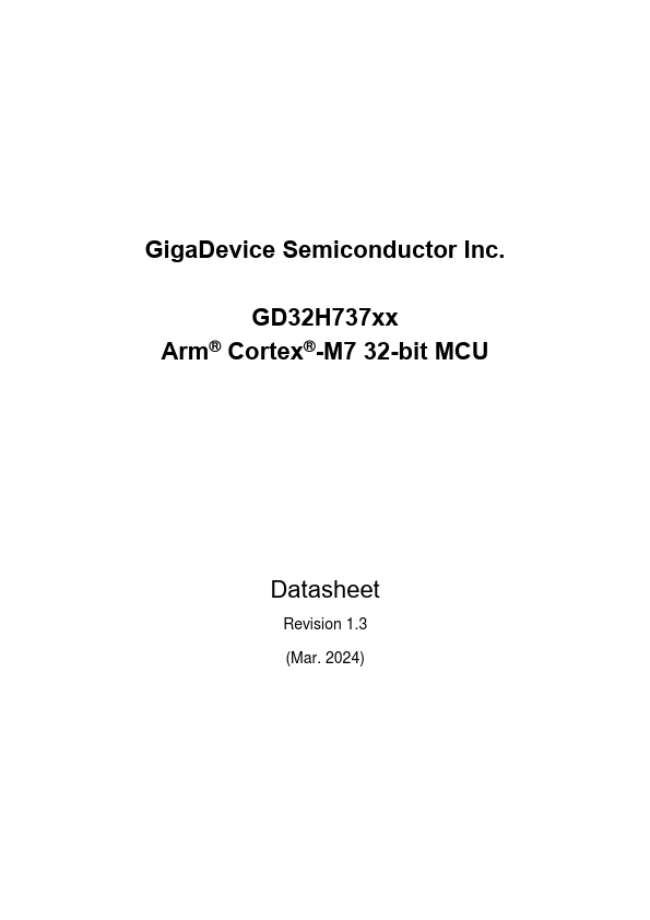 GD32H737xx Datasheet The GD32H737xx device belongs to the high performance line of GD32 MCU family. It is a new 32-bit general-purpose microcontroller based on the Arm® Cortex®-M7 core with best cost-performance ratio in terms of enhanced processing capacity, reduced power consumption and peripheral set.
