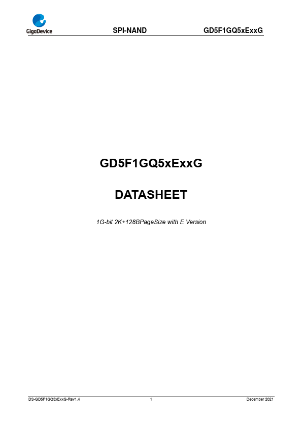 GD5F1GQ5xExxG SPI (Serial Peripheral Interface) NAND Flash provides an ultra-cost effective while high density non-volatile memory storage solution for embedded systems, based on an industry-standard NAND Flash memory core. It is an attractive alternative to SPI-NOR and standard parallel NAND Flash, with advanced features.