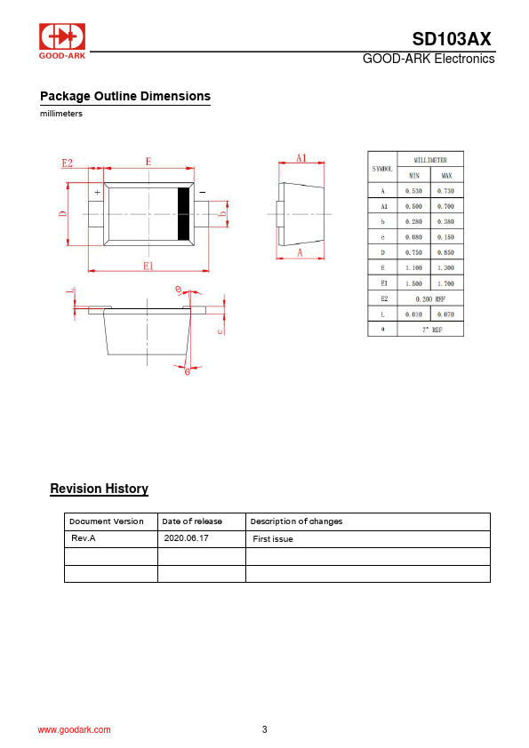 of changes First issue .goodark. 3 Doc.No.643141 SD103AX GOOD-ARK Electronics Disclaimers These materials are intended as a reference to assist our customers in the selection of the Suzhou Good-Ark product best suited to the customer’s application; they do not convey any license under any intellectual property rights, or any other rights, belonging to Suzhou Good-Ark Electronics Co., Ltd.or a third party.