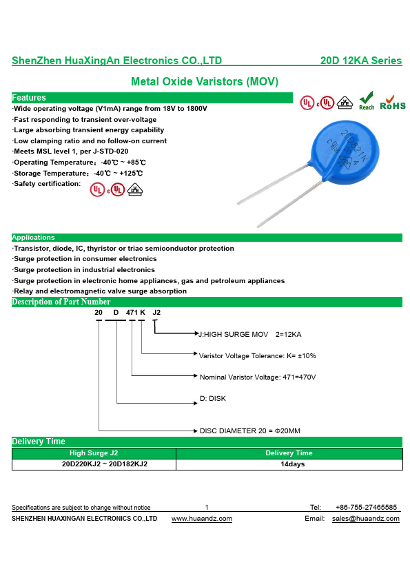 - Wide operating voltage (V1mA) range from 18V to 1800V