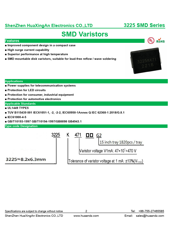 | Description | SMD Varistor |