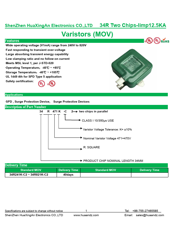 - Storage Temperature:-40℃ ~ +105℃1