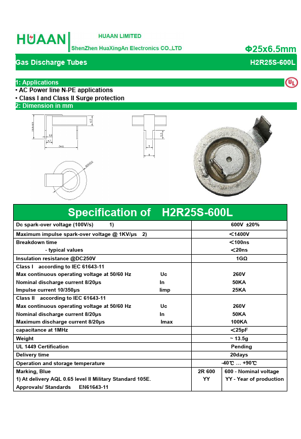 H2R25S-600L is Gas Discharge Tubes manufactured by HuaXingAn Electronics.