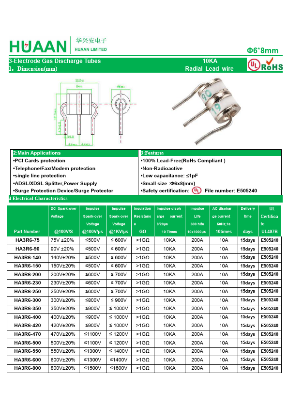 HA3R6-550 is 3-Electrode Gas Discharge Tubes manufactured by HuaXingAn Electronics.