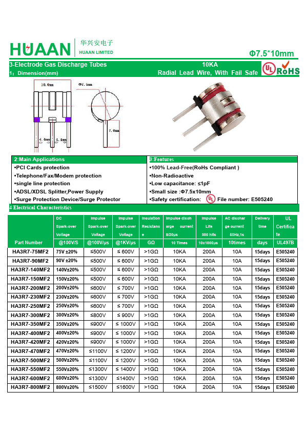 HA3R7-350MF2 is 3-Electrode Gas Discharge Tubes manufactured by HuaXingAn Electronics.
