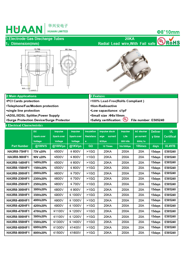 HA3R8-420HF1 is 3-Electrode Gas Discharge Tubes manufactured by HuaXingAn Electronics.