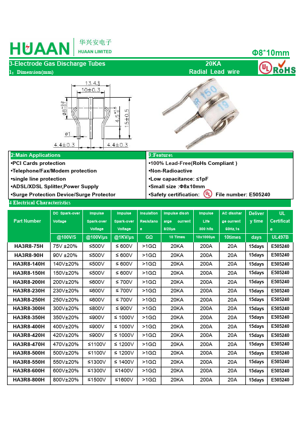 HA3R8-600H is 3-Electrode Gas Discharge Tubes manufactured by HuaXingAn Electronics.