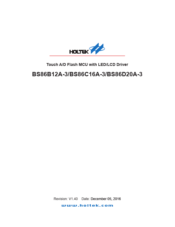 These devices are a series of Flash Memory type 8-bit high performance RISC architecture microcontrollers with fully integrated touch key functions. With all touch key functions provided internally and with the convenience of Flash Memory multi-programming.