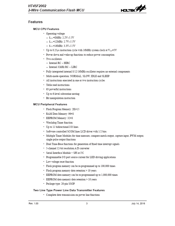 HT45F2002 Key Features