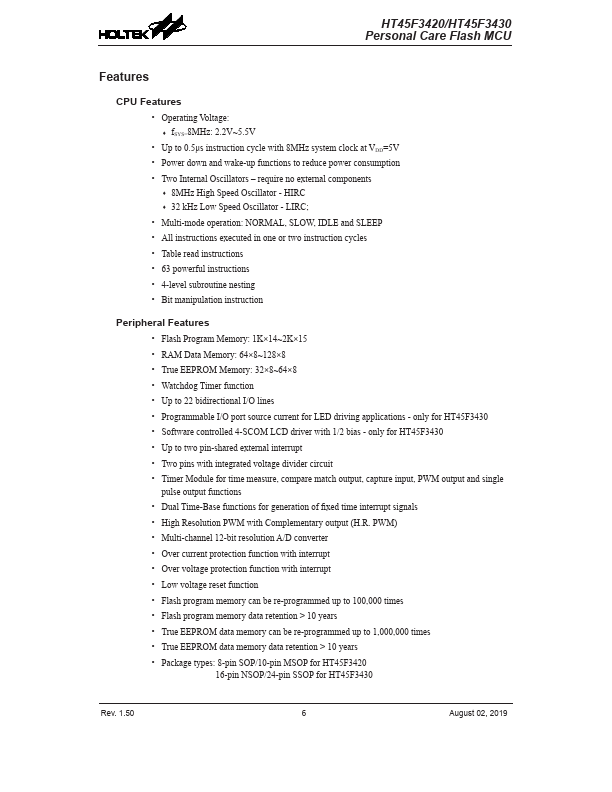 HT45F3430 Key Features