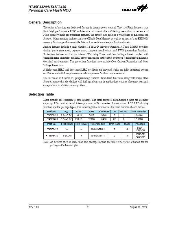 HT45F3430 Description