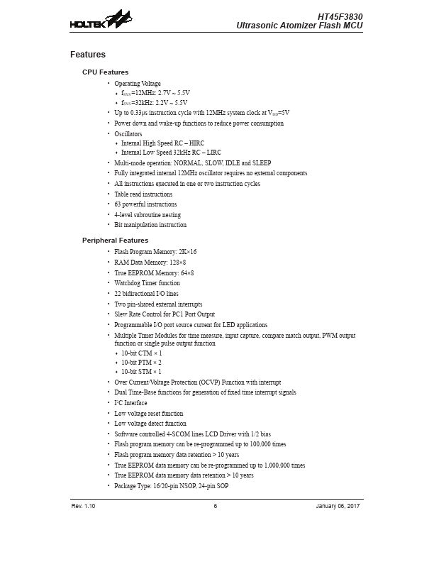 HT45F3830 Key Features