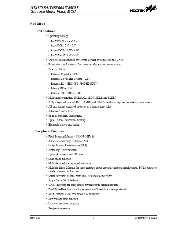 HT45F66 Key Features
