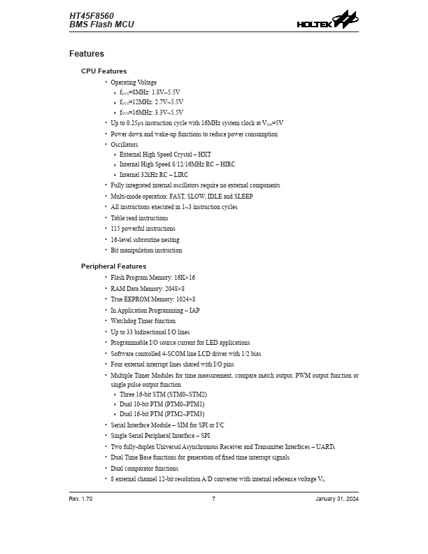 HT45F8560 Key Features