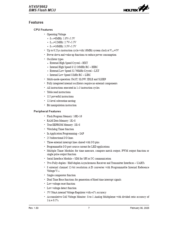 HT45F8662 Key Features