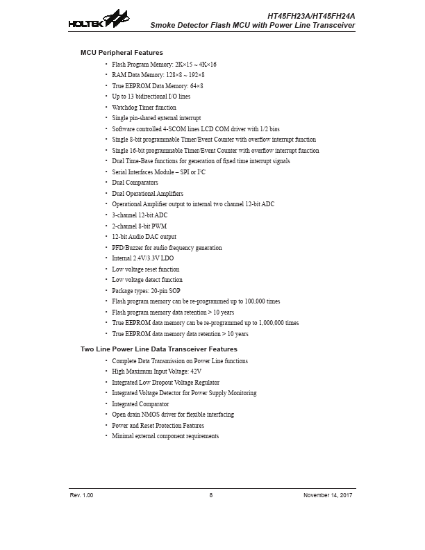 These devices are Flash Memory TinyPowerTM A/D type 8-bit high performance RISC architecture microcontrollers. Offering users the convenience of Flash Memory multi-programming.