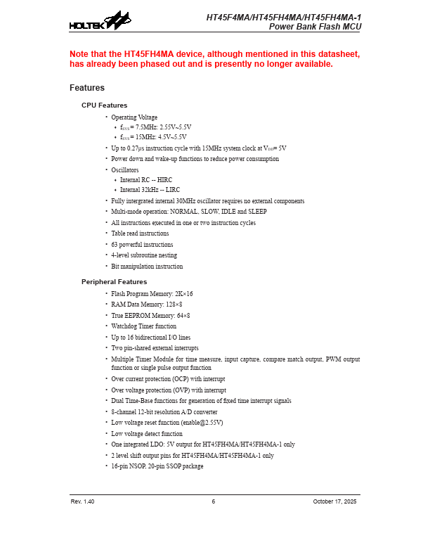 HT45FH4MA-1 Description