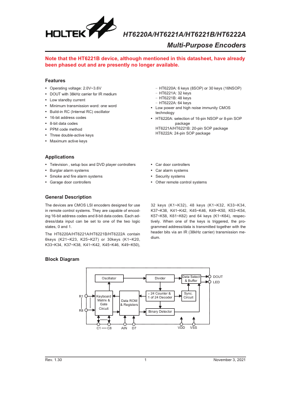 HT6220A Key Features