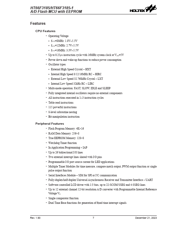 HT66F3185 Key Features
